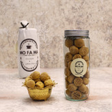حاجی بادام شیشه ای موفاما ترکیبی منحصر به فرد از بادام تازه و ادویههای خوش عطر مانند هل طبیعی و گلاب ارگانیک است.