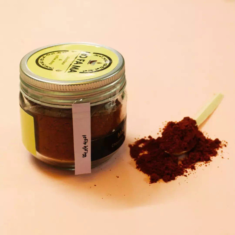 ادویه پاپریکا درجه یک و ارگانیک ۱۰۰ گرمی ، شیشه ای محصول فروشگاه موفاما است . درب شیشه این محصول قابل باز شدن است علاوه بر این حفراتی جهت پاشش ادویه روی درب قرار گرفته است . این ماده ترکیبی از فلفل های خشک ساخته شده است که شامل فلفل دلمه ای شیرین و فلفل قرمز تند هم می شود. پاپریکا انواع گوناگونی دارد و از این ادویه هم به عنوان چاشنی انواع غذاها و هم رنگ دهنده استفاده می شود. پاسخ به پرسش های شما پیج Mofama_Official