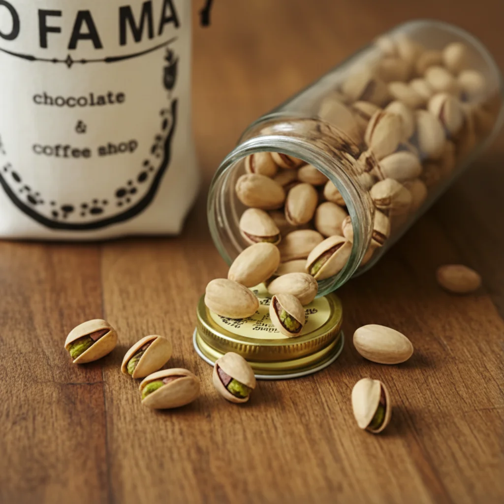 پسته اکبری ممتاز خام اعلا مجلسی دستچین درشت 350 گرمی شیشه ای موفاما
