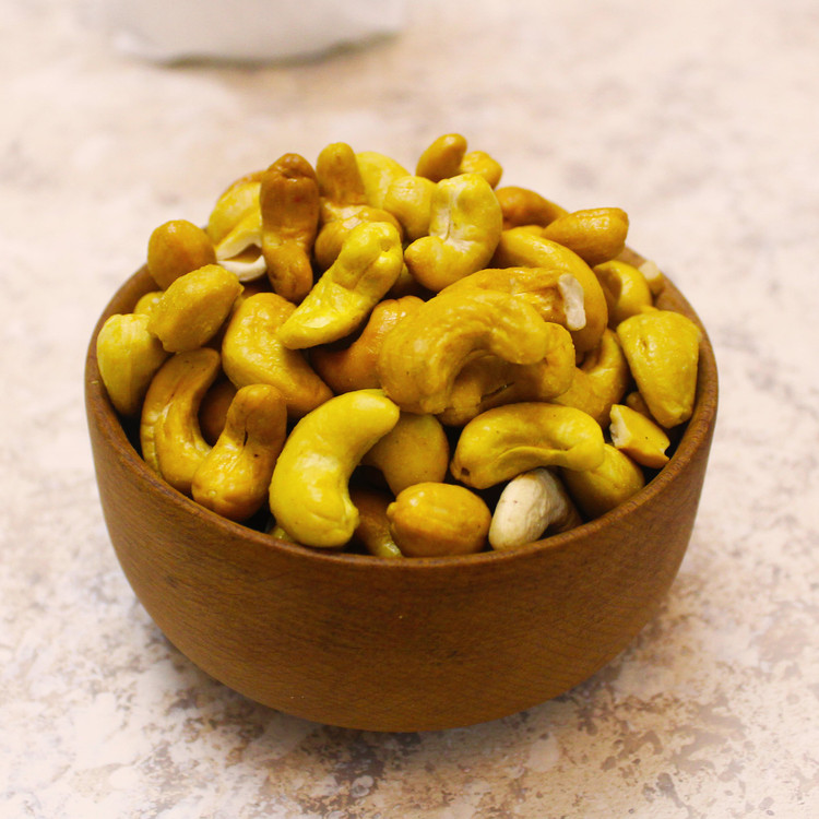 بادام هندی نمکی زعفرانی موفاما از تازه ترین و مرغوب ترین بادام هندی شور تهیه شده است.این مغز سرشار از خاصیت در کشورهایی مانند: هندوستان، سریلانکا، کنیا و تانزانیا که آب و هوای گرم و خشک دارند، کشت میشود. این ماده خوراکی به حفظ سلامت قلب، سلامت دهان و دندان و بهبود عملکرد سیستم ایمنی بدن کمک شایانی میکند. بادام هندی دارای ویتامینهایی از جمله: ویتامین ث، ویتامین B۱، ویتامین B۲، ویتامین B۳، ویتامین B۶، ویتامین E، ویتامین K است. از مواد معدنی ضروری موجود در بادام هندی نیز میتوان آهن، روی، منیزیم، پتاسیم، فسفر، مس و کلسیم را نام برد. شما میتوانید با خرید یک جار شیشه ای بادام هندی موفاما این میان وعده خوش خوراک و مقوی را داخل کیف یا خودرو در باشگاه، محل کار، مدرسه دانشگاه حمل کنید. جنس بسته بندی این محصول جارشیشه ای همراه با پوشش پارچه ای مطابق تصویر است تا به عنوان یک بسته بندی ارزشمند از نظر نگه داری محصول، دوست دار محیط زیست، لوکس و هدیه در کنار شما و عزیزانتون قرار بگیرد.