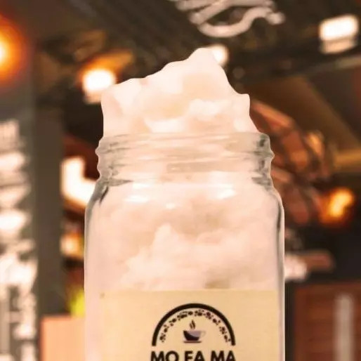 پشمک وانیلی پنبه ای 175 گرمی شیشه ای موفاما بسیار با کیفیت و بهداشتی